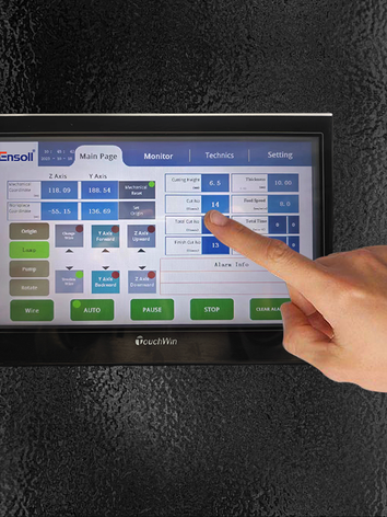 The ESG400-4T is extremely versatile and can therefore be used in a wide range of industries. The machine base consists of an integrated cast and steel construction. The structure consists of hardened and precisely manufactured aluminum parts to ensure high accuracy. The work piece is fixed horizontally and the cutting process takes place from top to bottom.